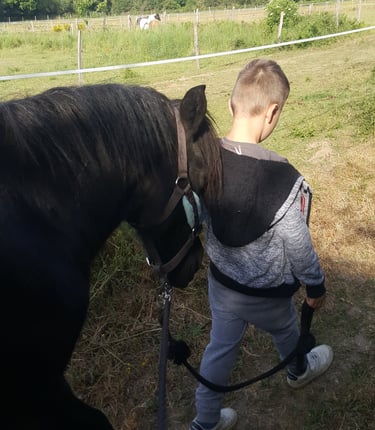 La relation avec le cheval est un support très intéressant pour l'apprentissage de l'altérité et de l'écoute de l'autre, de l'empathie. Elle favorise la communication verbale et non verbale, l'expression des émotions et ressentis, l'attention conjointe... Mais aussi la maîtrise de soi et l'apprentissage des règles et des limites indispensables aux relations sociales et au respect de l'autre.